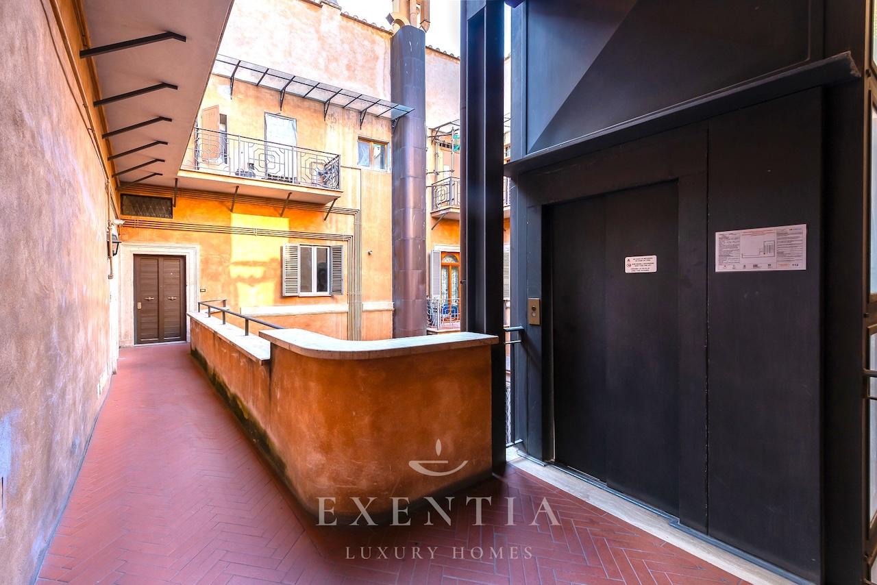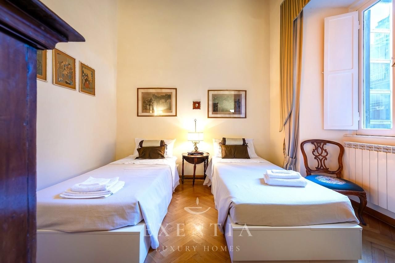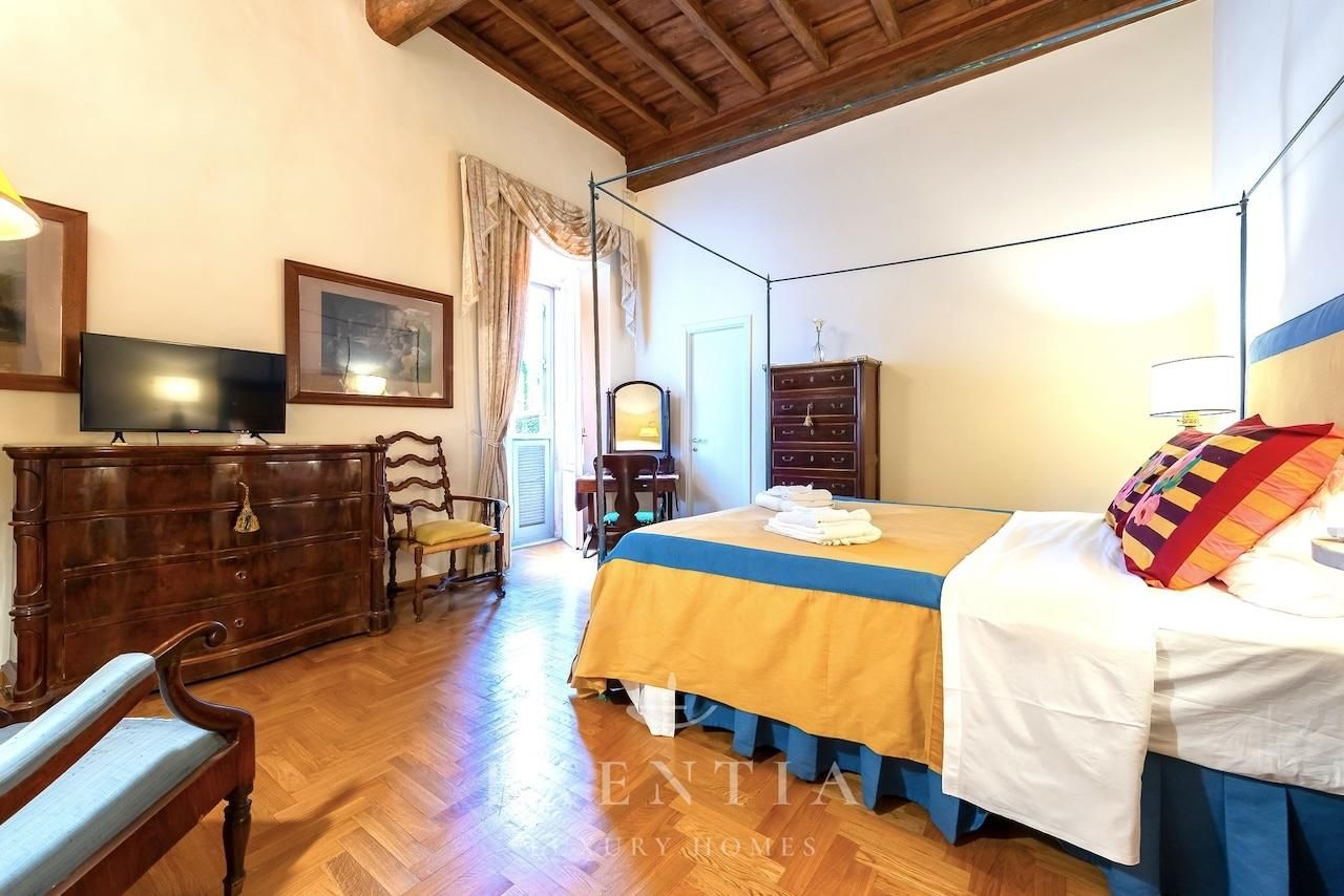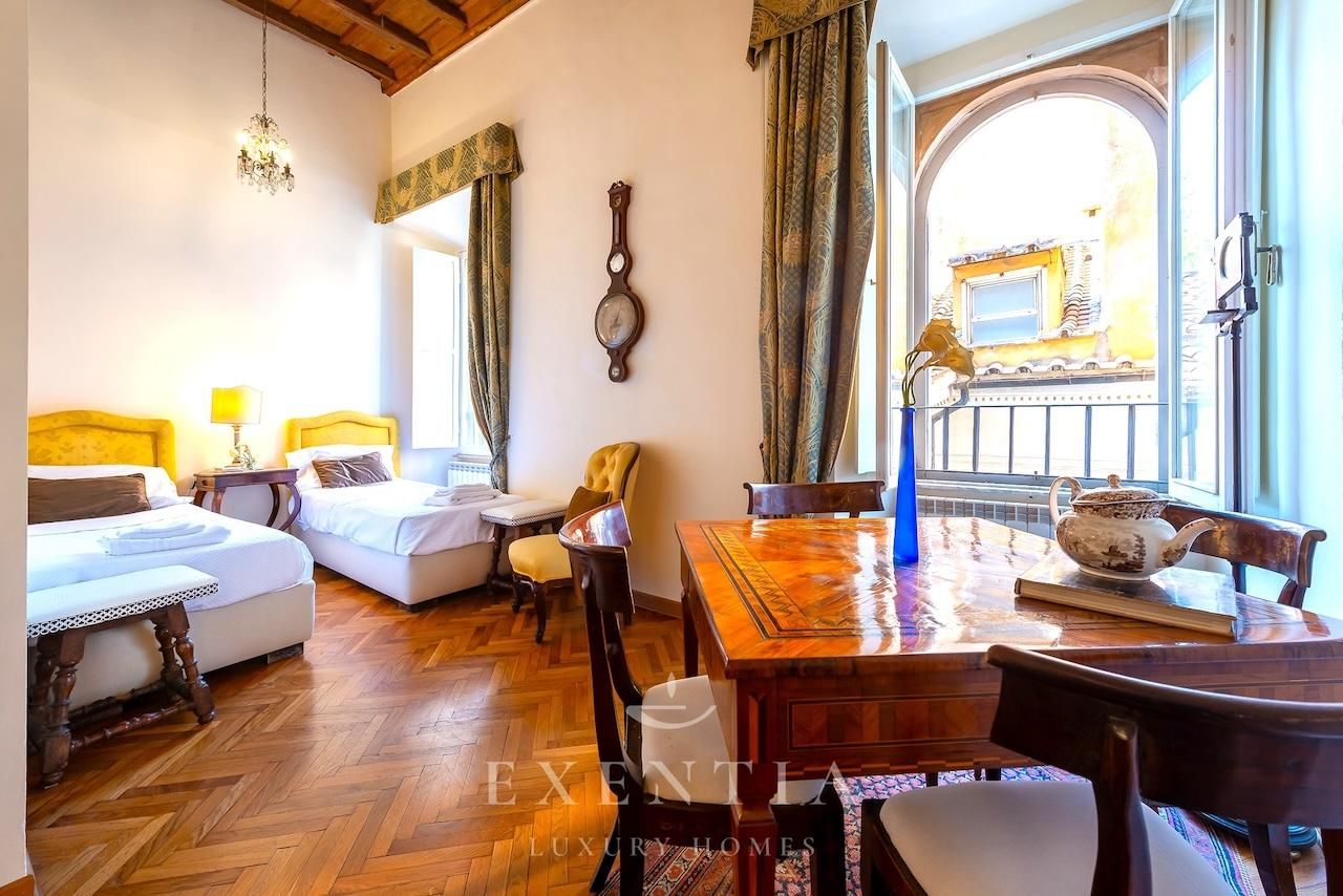Salendo al terzo piano di un edificio storico, verrete accolti da ambienti ampi e luminosi caratterizzati da soffitti con travi originali, pavimenti in cotto antico e dettagli architettonici che evocano il carattere autentico della Roma barocca. La spaziosa zona living è ideale per momenti di relax o convivialità, mentre la cucina completamente attrezzata permette di preparare pasti come a casa vostra.