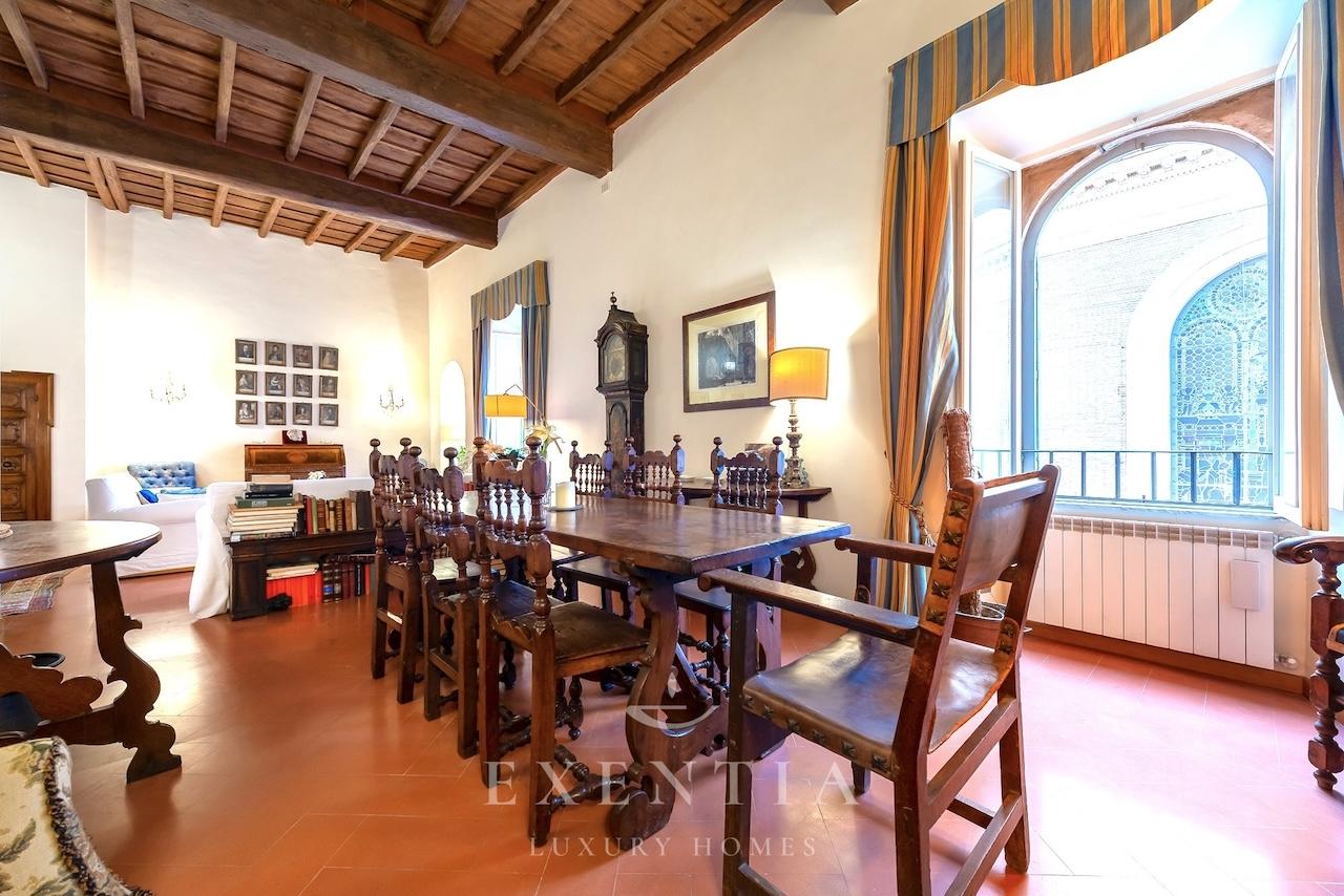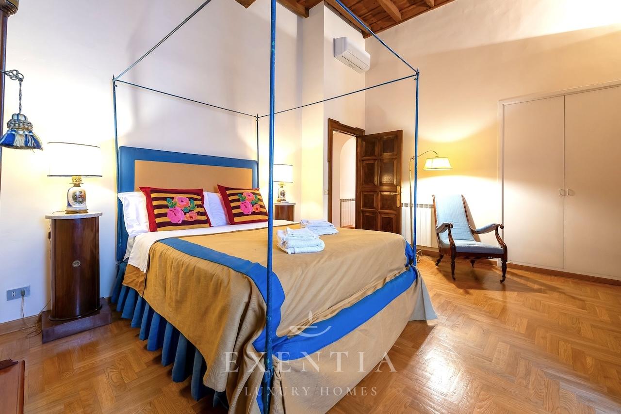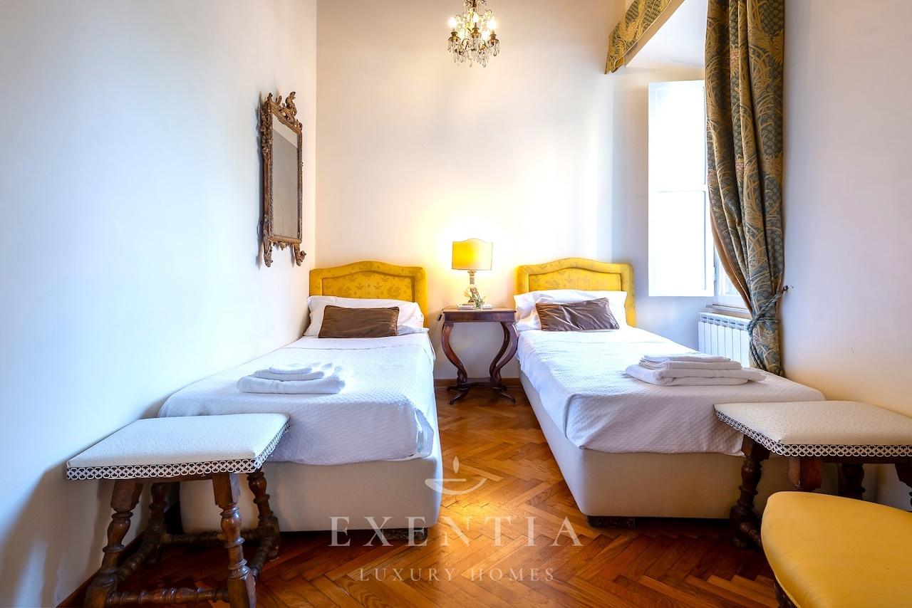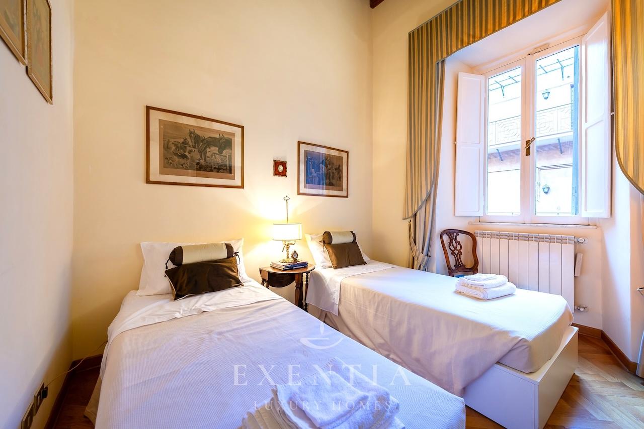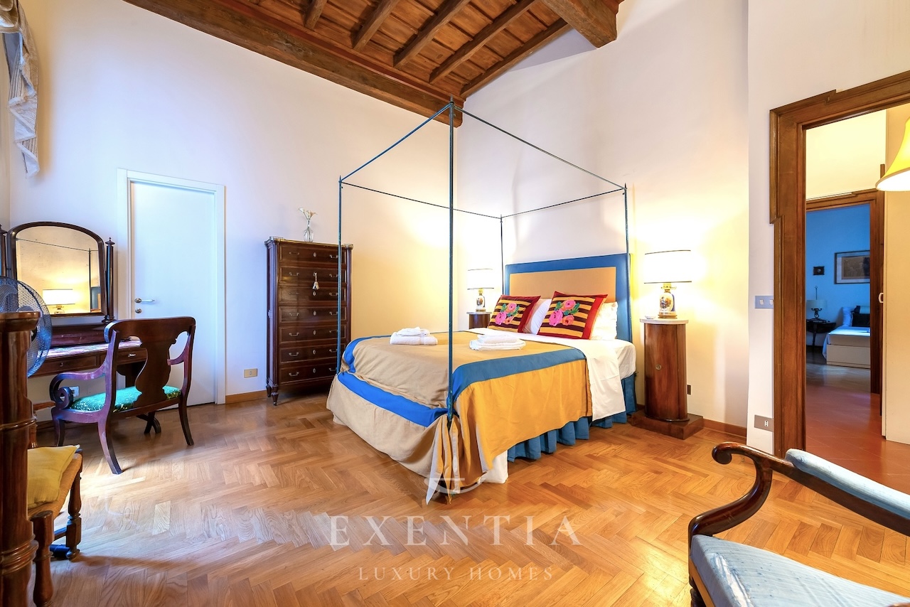 Salendo al terzo piano di un edificio storico, verrete accolti da ambienti ampi e luminosi caratterizzati da soffitti con travi originali, pavimenti in cotto antico e dettagli architettonici che evocano il carattere autentico della Roma barocca. La spaziosa zona living è ideale per momenti di relax o convivialità, mentre la cucina completamente attrezzata permette di preparare pasti come a casa vostra.