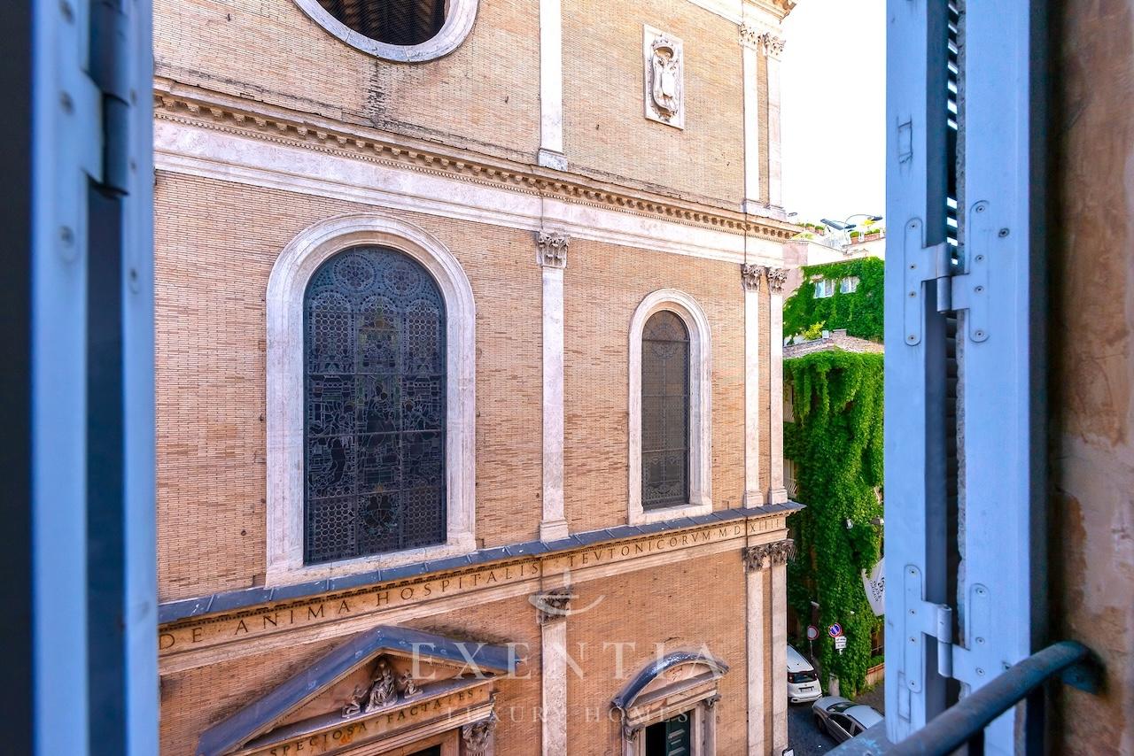 L’appartamento dispone di tre confortevoli camere da letto e due bagni funzionali, garantendo privacy e comodità per tutti gli ospiti. Alcune stanze offrono vedute spettacolari sulla Chiesa di Santa Maria dell’Anima, un elemento che aggiunge un tocco unico e suggestivo alla vostra esperienza.