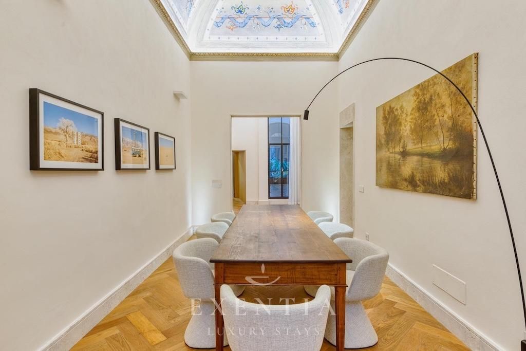 A hidden aristocratic residence in the heart of Rome, where timeless architecture meets contemporary luxury. This extraordinary 270 sqm penthouse offers soaring ceilings, hand-painted frescoes and refined design in one of the most exclusive locations in the historic center.
