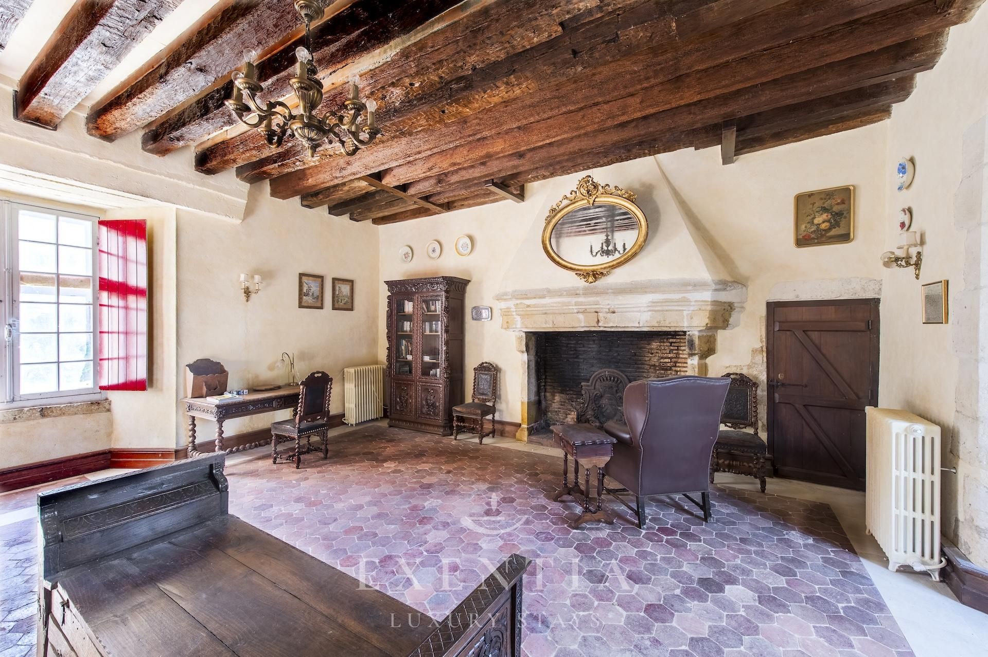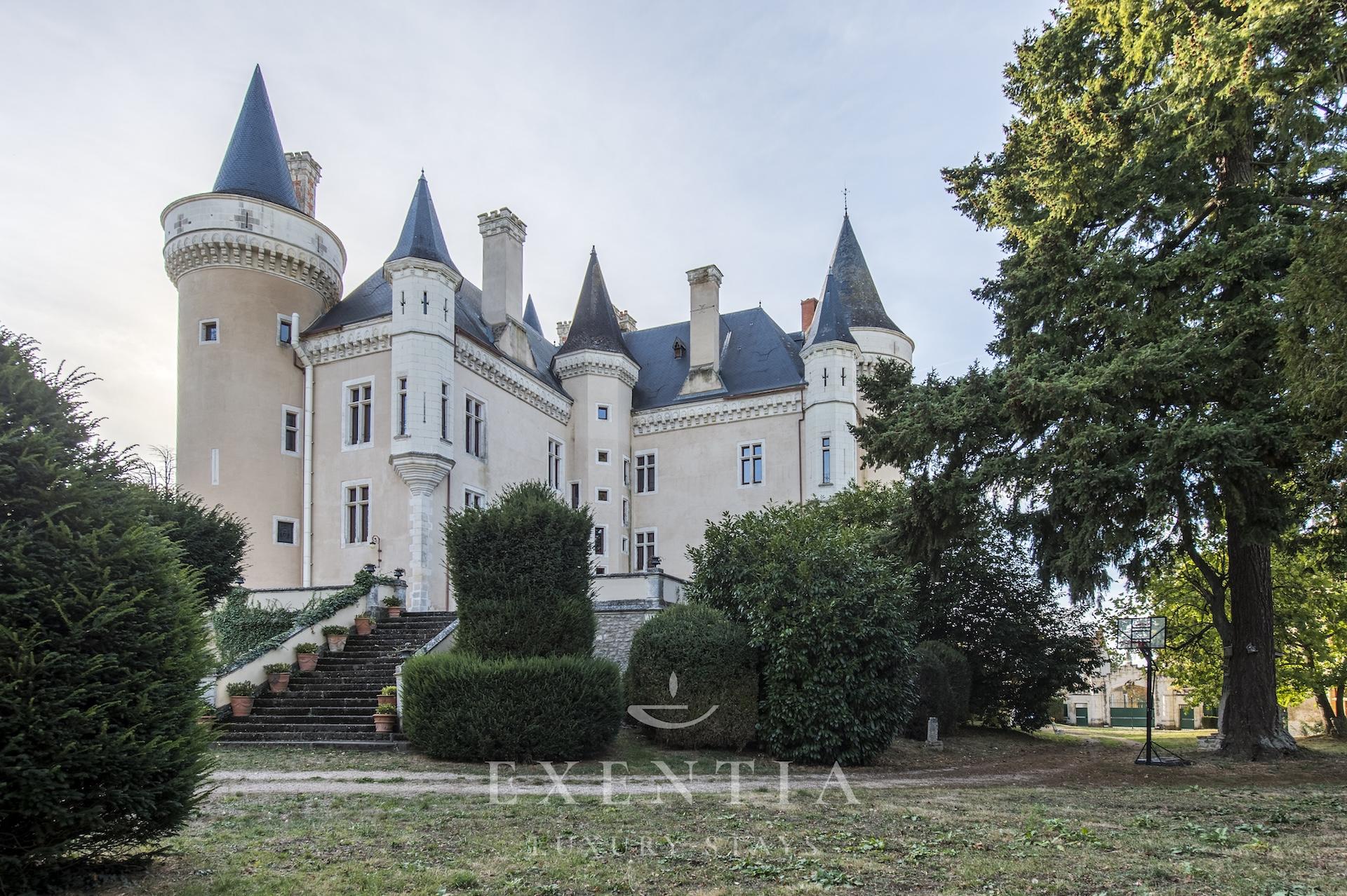 Castello gotico del XII secolo nella Loira, con 5 camere, saloni affrescati e parco privato. Dimora storica tra charme e cultura, perfetta per soggiorni esclusivi ed eventi.