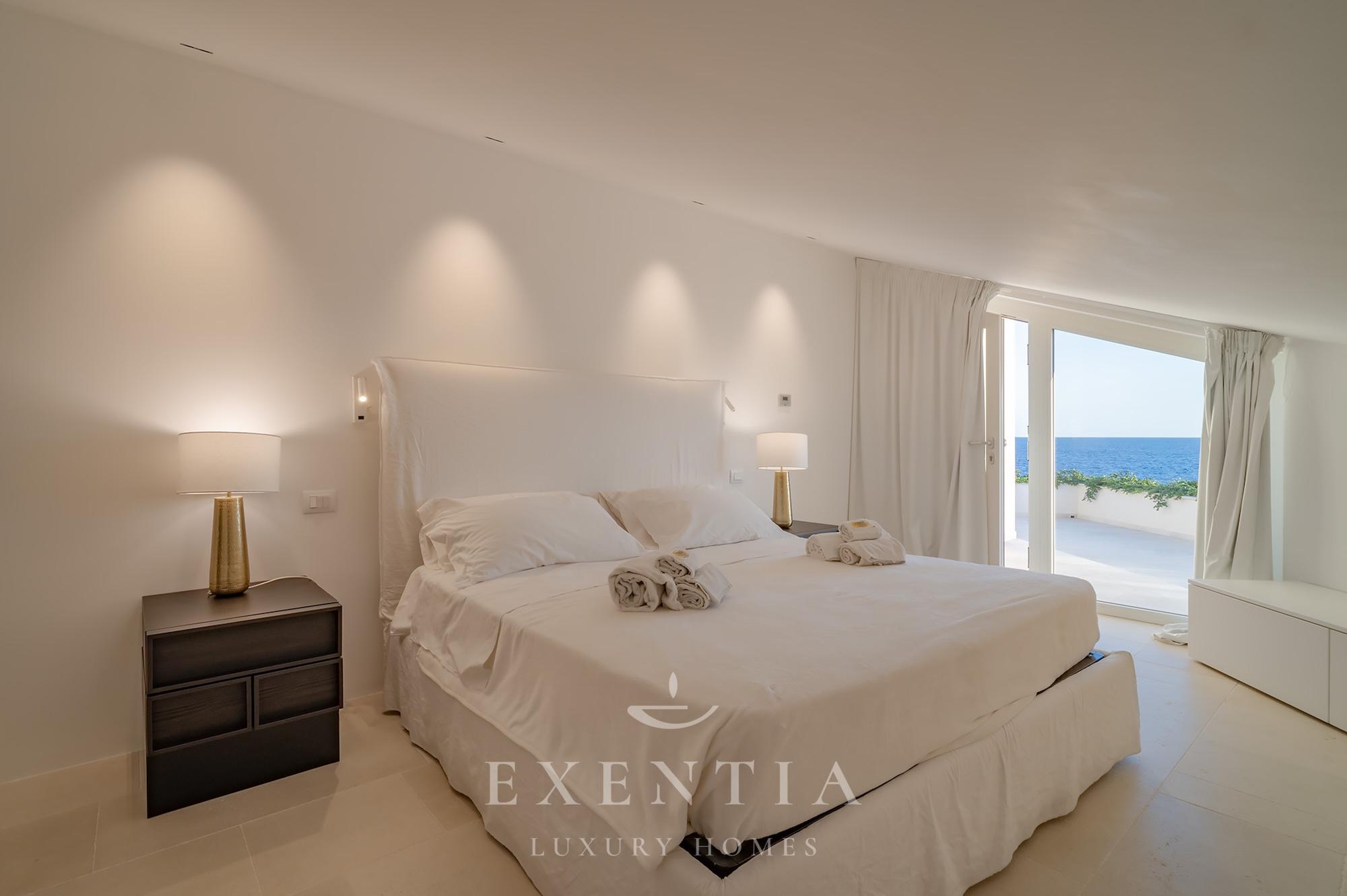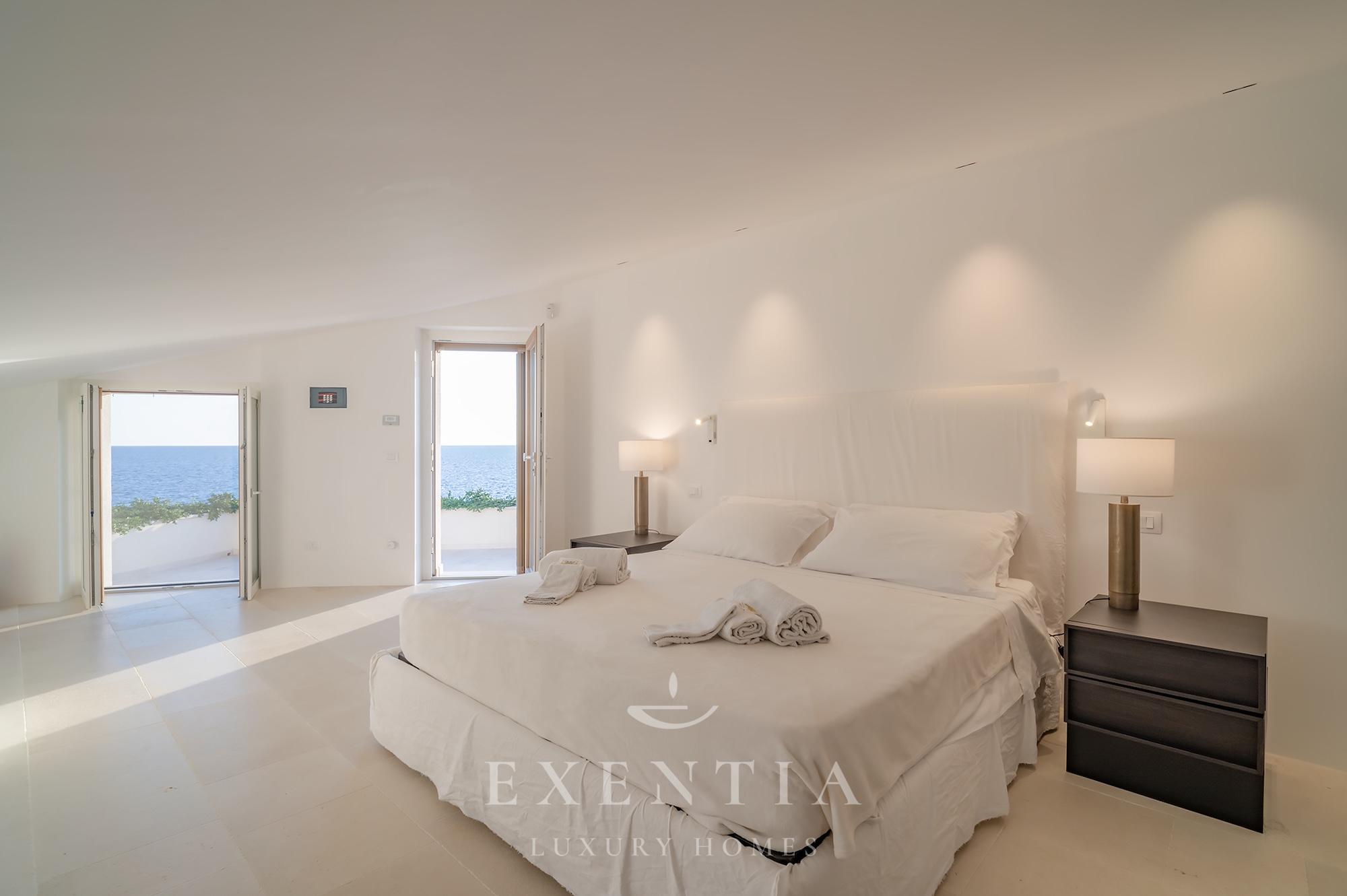 • Master Suite: King-size bed, private bathroom with rain shower and bathtub, bidet, walk-in wardrobe, TV, safe, and direct access to the sea-view terrace.