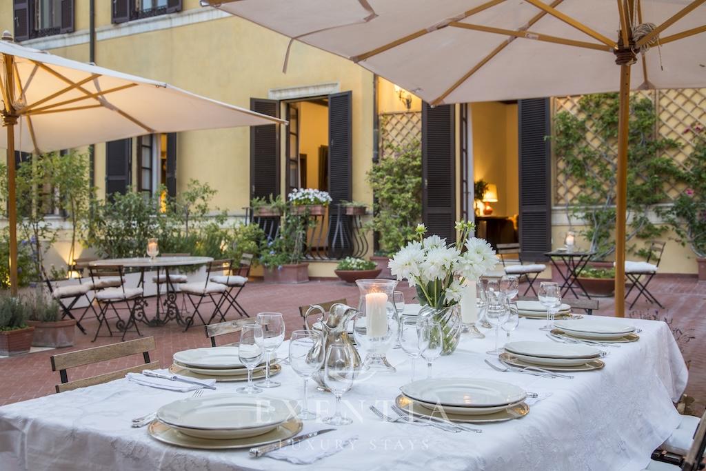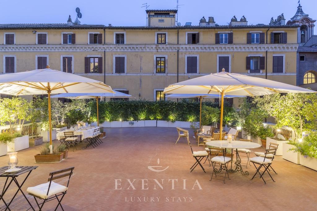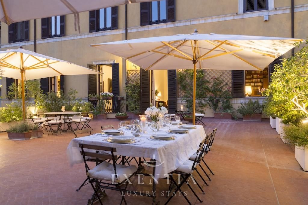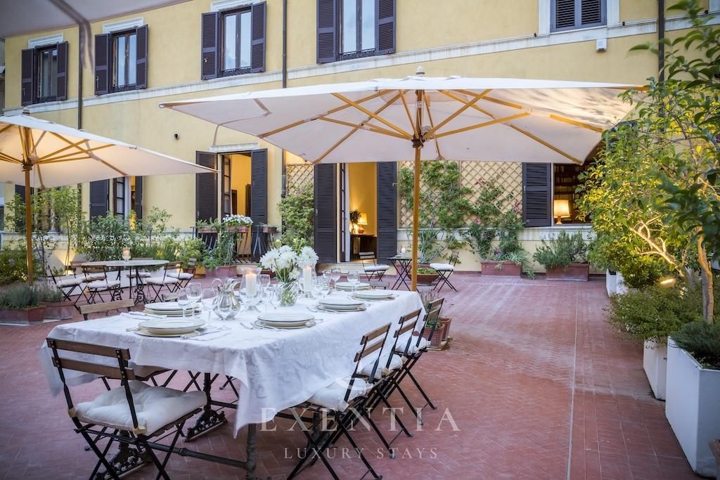 Hôtel des Arcades is a luxury apartment in Rome’s historic center, located in one of the city’s most prestigious quarters just steps from iconic monuments, elegant piazzas, boutique shopping streets, and renowned restaurants. This exclusive Roman residence allows guests to explore the Eternal City entirely on foot, immersing themselves in centuries of art, architecture, and culture, while returning each evening to the privacy and tranquillity of a distinguished 300 sqm historic palazzo.