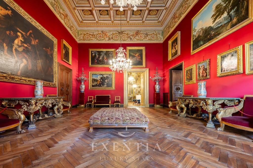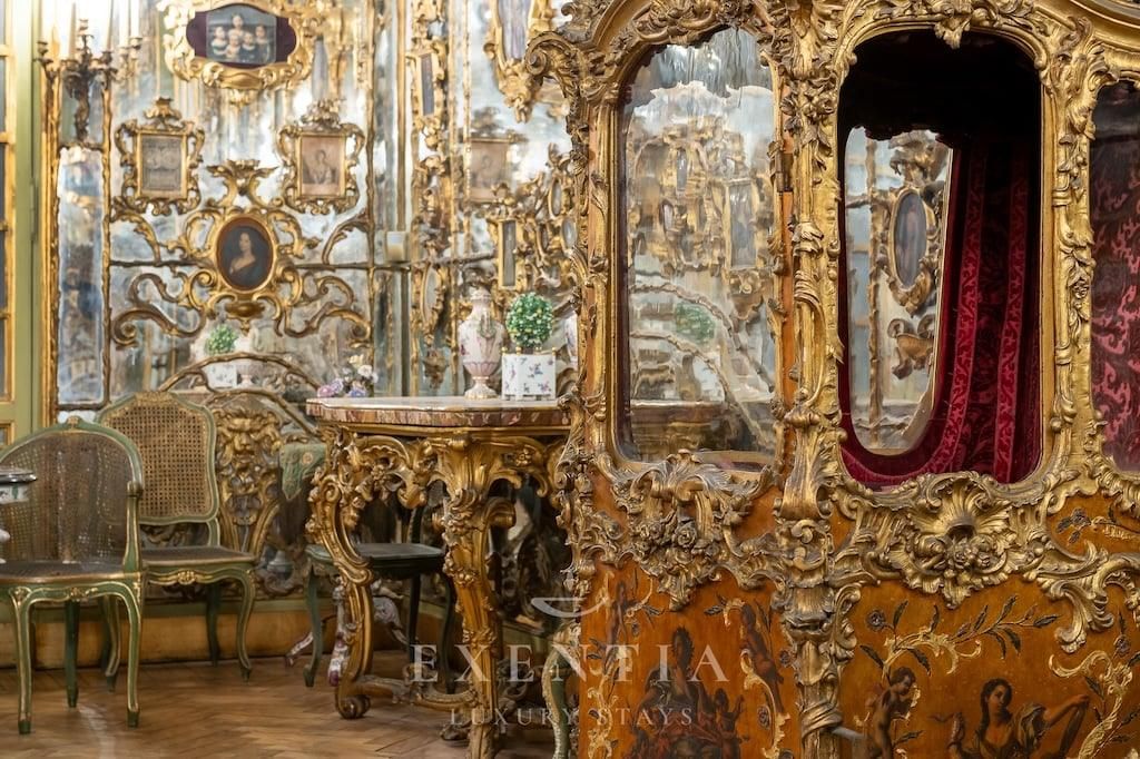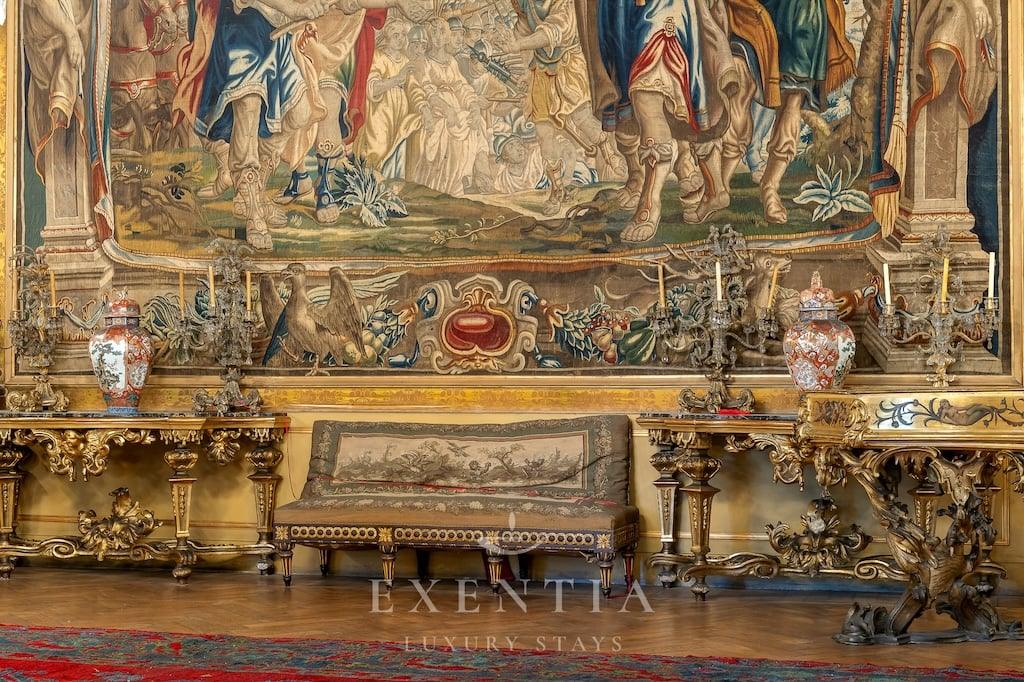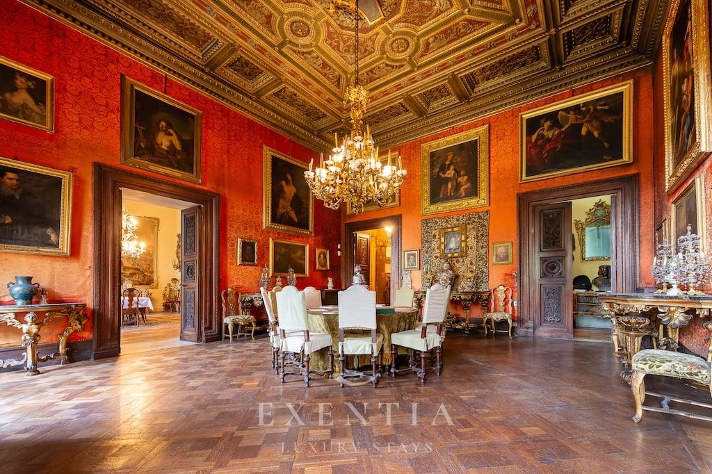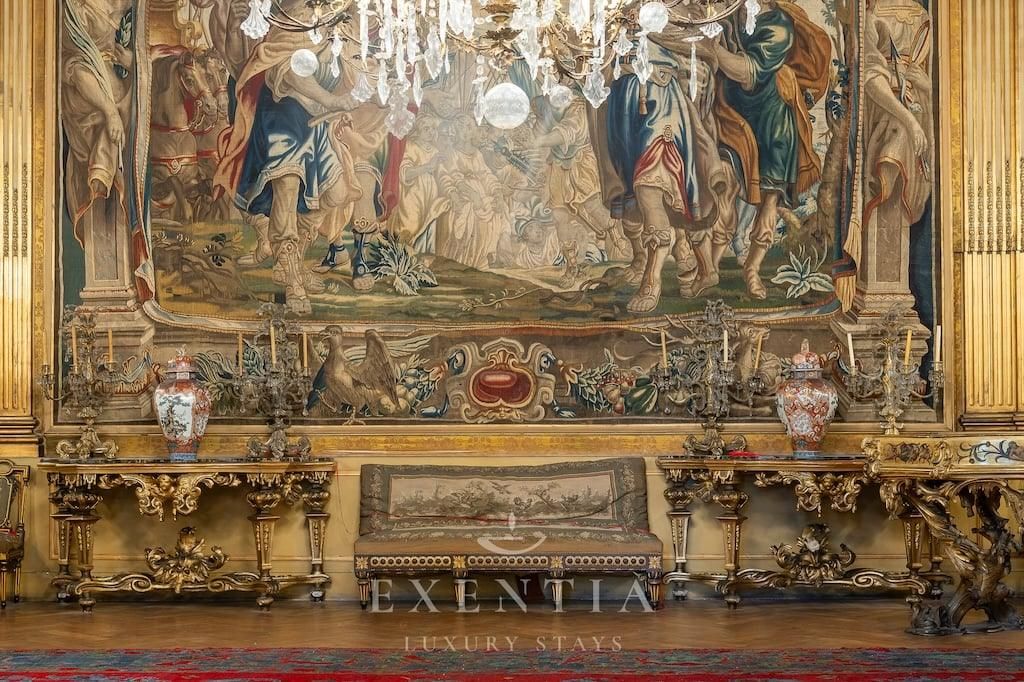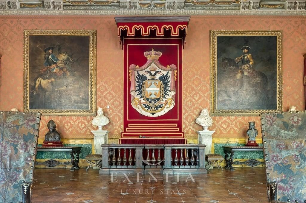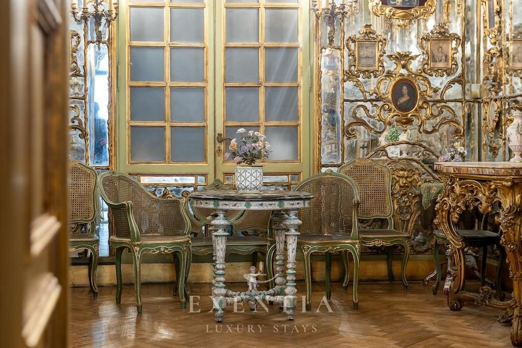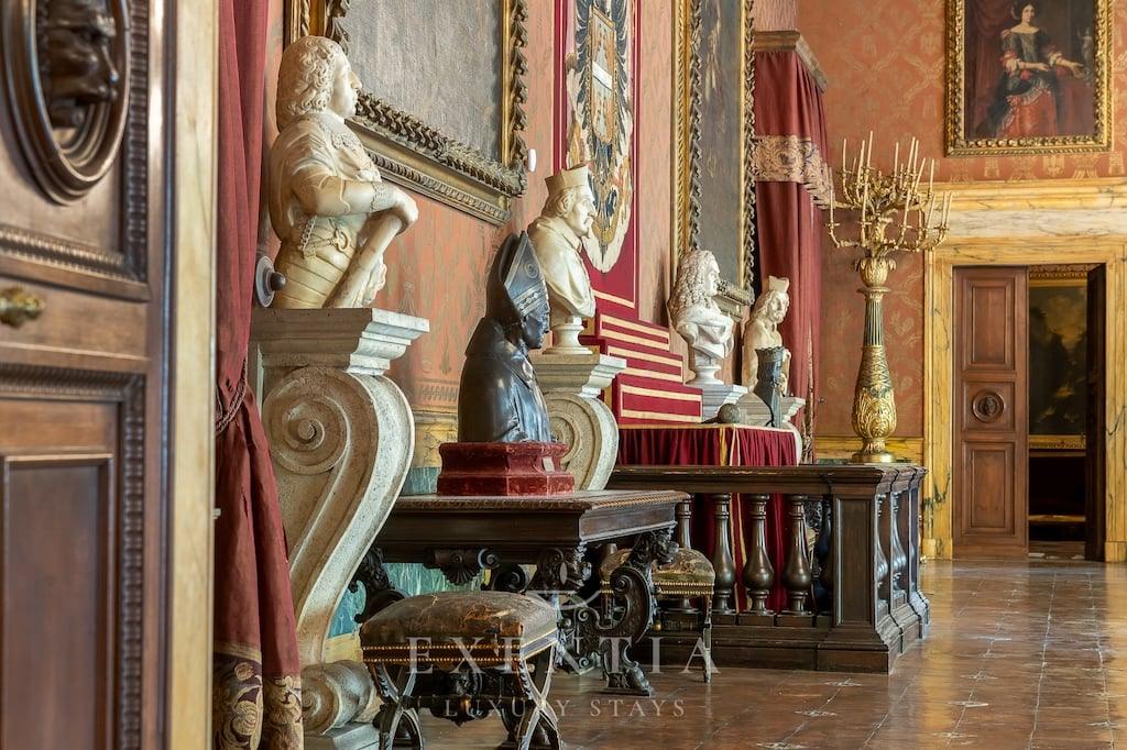 Through Exentia, guests are granted privileged access to the ceremonial heart of the residence, a series of magnificent halls preserved in their original splendor. Walking through these spaces feels like stepping into another era, where aristocratic life still echoes through frescoed ceilings, antique furnishings, and grand architectural volumes.