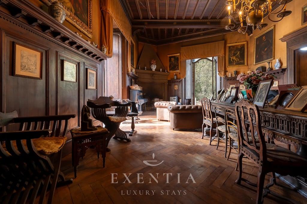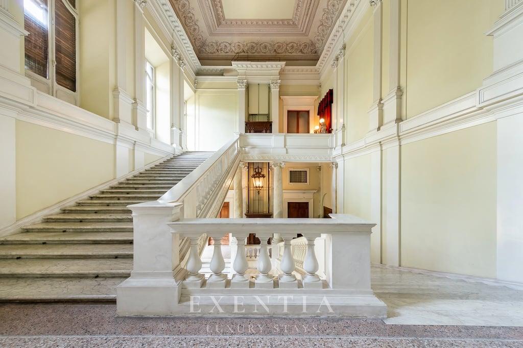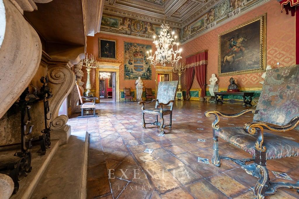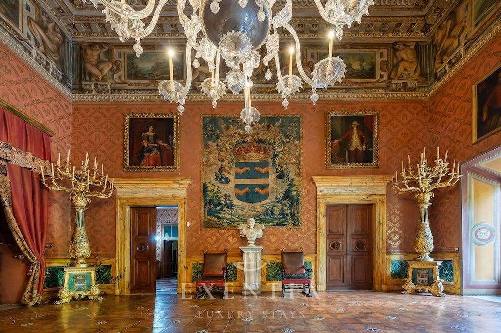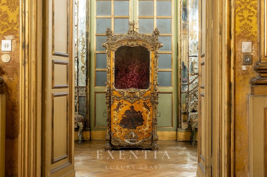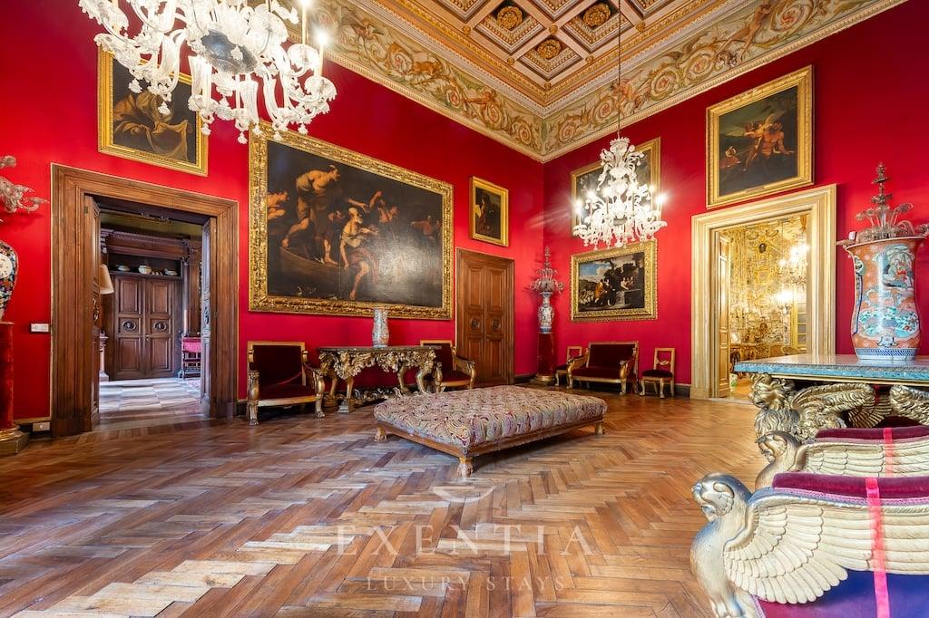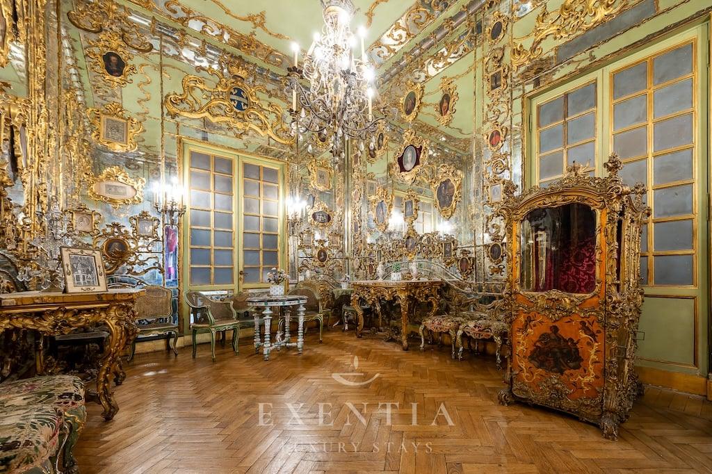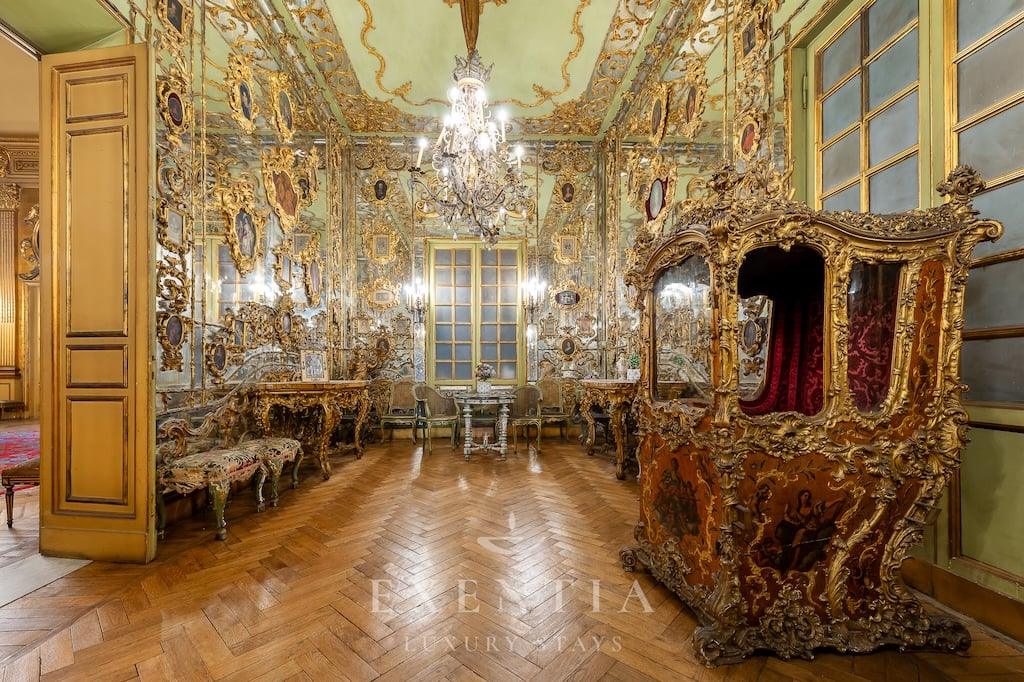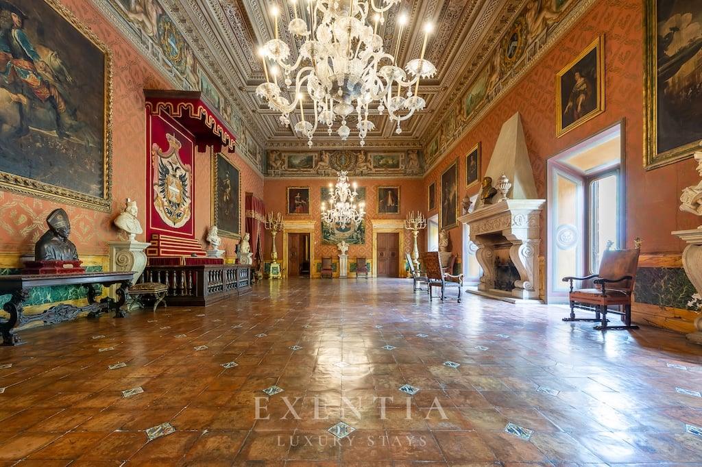 Through Exentia, guests are granted privileged access to the ceremonial heart of the residence, a series of magnificent halls preserved in their original splendor. Walking through these spaces feels like stepping into another era, where aristocratic life still echoes through frescoed ceilings, antique furnishings, and grand architectural volumes.