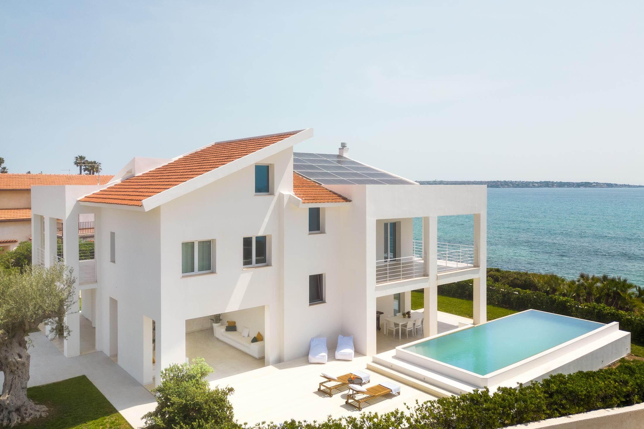 Villa di design sulla spiaggia dell’Arenella a Siracusa, con piscina infinity riscaldabile, accesso diretto al mare e impianti energetici sostenibili. Comfort ed eleganza in un contesto esclusivo.