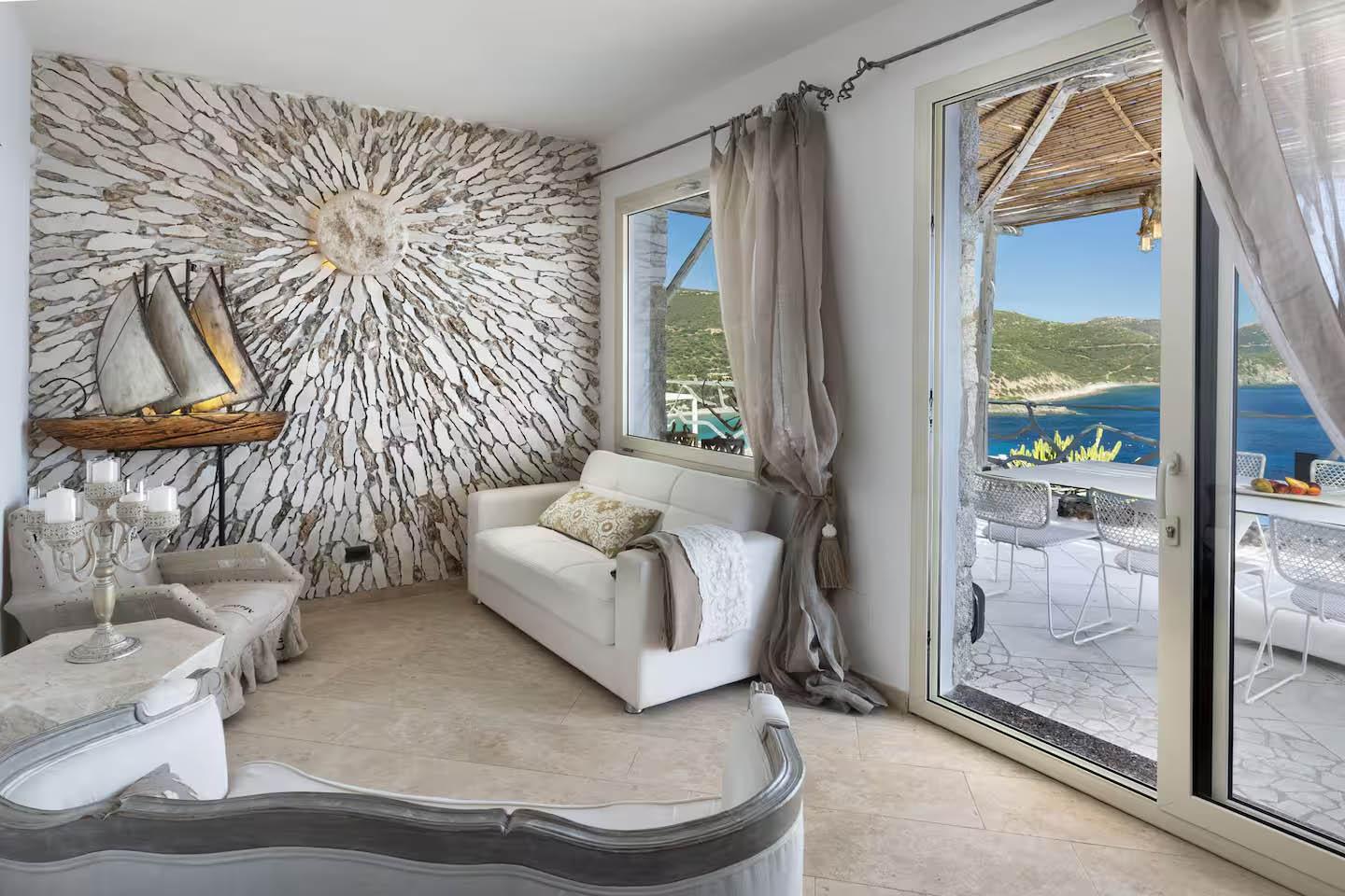 Villa Symphonie de Vagues, affacciata sul Golfo degli Angeli, offre 5 suites per ospitare fino a 26 persone. Immersa in un rigoglioso giardino con due piscine, idromassaggio e vista mozzafiato sulla spiaggia di Genn’e Mari, è il rifugio ideale per famiglie e amici. Dotata di aria condizionata, Wi-Fi e parcheggio privato, accoglie anche gli animali.